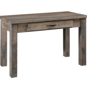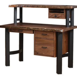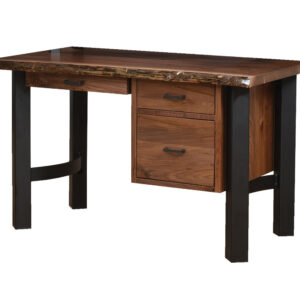 Options: • Keyboard pullout or pencil drawer above kneehole • Live edge top (shown)
